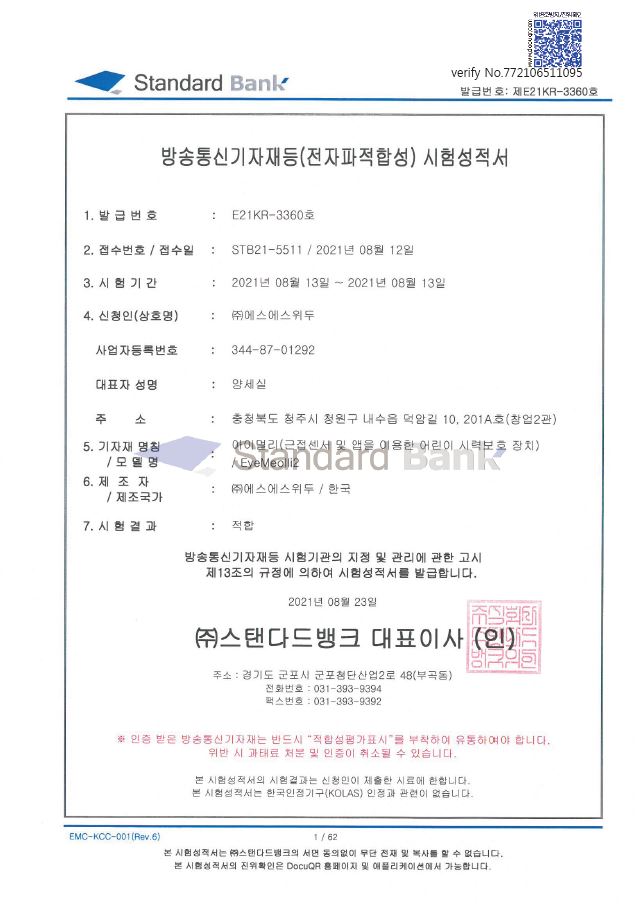 방송통신기자재등(전자파적합성) 시험성적서