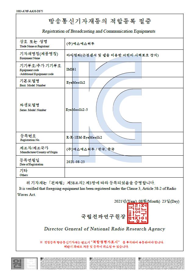 방송통신기자재등의 적합등록 필증
